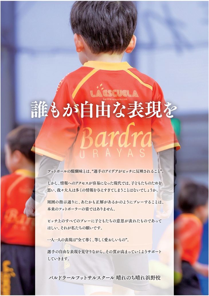 教えてもらえることが多くなった今、あえて原点に帰り、フットボールの魅力や楽しさが詰まった試合の中で、人が本来持っている『見て、感じ、真似ぶ(学ぶの語源)』力を取り戻し、本物の技術を体得させていけるよう、試合形式(実戦)でのトレーニングを行っていきます。