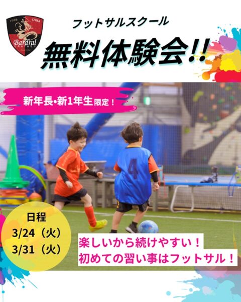 バルドラール浦安フットサルスクールの無料体験会開催決定! 3/24(火)、3/31(火)どちらの無料体験会も参加可能です!