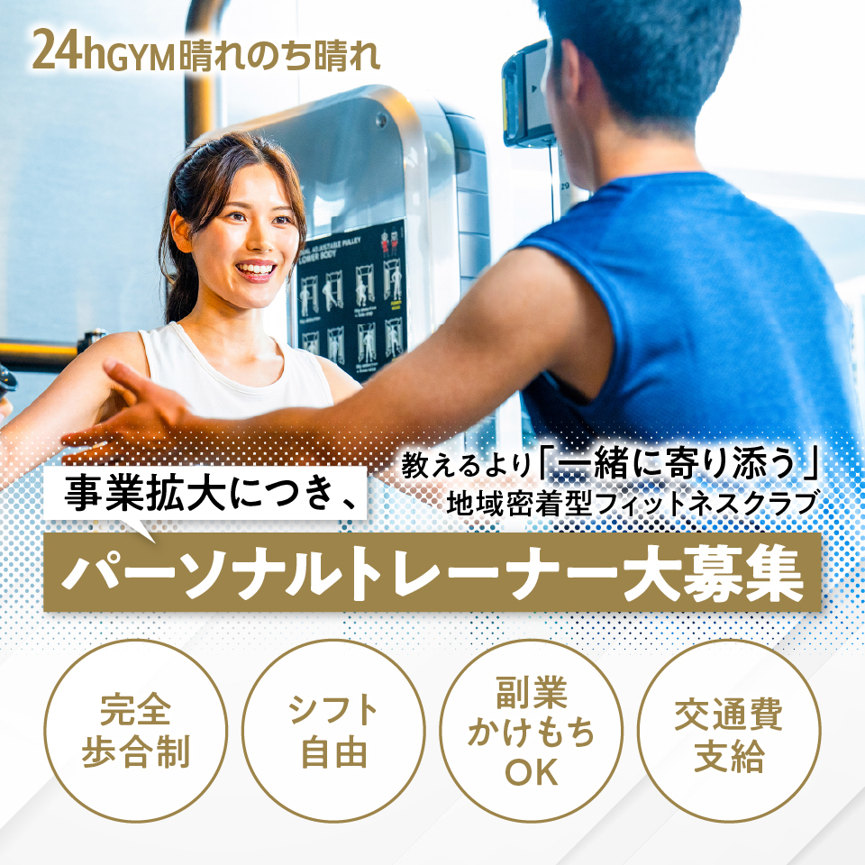 地域密着型フィットネスクラブ「晴れのち晴れ」にて、パーソナルトレーニングサービスを提供していただきます。